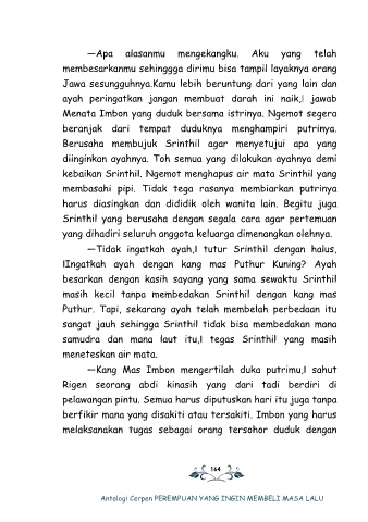 ―Kang Mas Imbon mengertilah duka putrimu,‖ sahut
