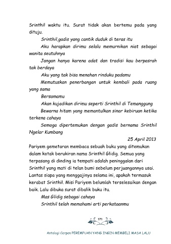 Srinthil waktu itu. Surat tidak akan bertemu pada yang
