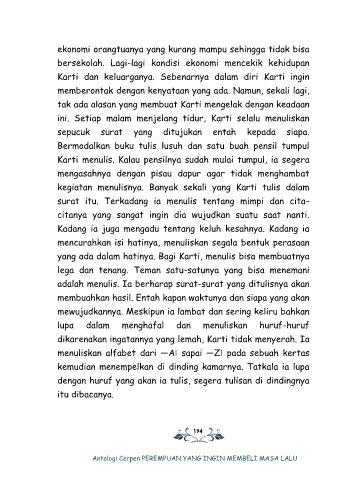 yang ada dalam hatinya. Bagi Karti, menulis bisa membuatnya