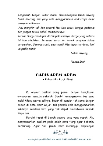 ini kau rindukan. Bersama surat ini nenek ucapkan salam