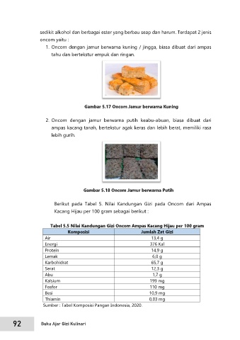 Tabel 5.5 Nilai Kandungan Gizi Oncom Ampas Kacang Hijau per 100 gram