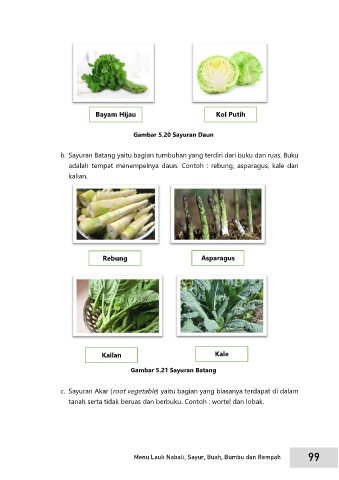 b. Sayuran Batang yaitu bagian tumbuhan yang terdiri dari buku dan ruas. Buku