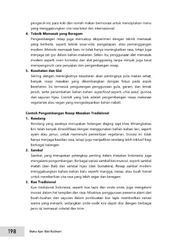 banyak resep masakan yang dikembangkan dengan fokus pada aspek