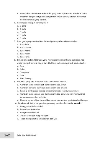 10. Aspek-aspek dalam pengembangan resep masakan Indonesia, kecuali…