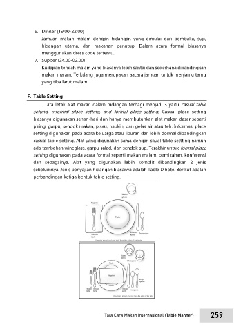 sebelumnya. Jenis penyajian hidangan biasanya adalah Table D’hote. Berikut adalah