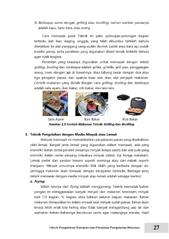 3) Barbeque, sama dengan grilling atau broilling, namun sumber panasnya