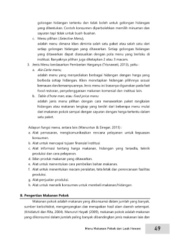 setiap golongan hidangan yang ditawarkan. Setiap golongan hidangan
