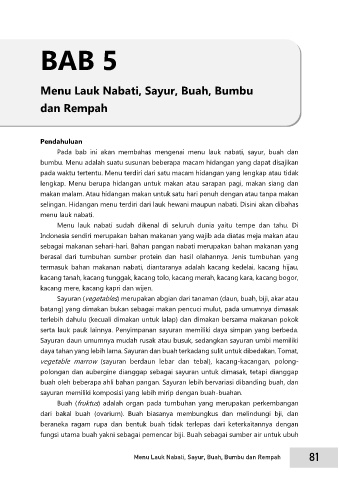 Pada bab ini akan membahas mengenai menu lauk nabati, sayur, buah dan