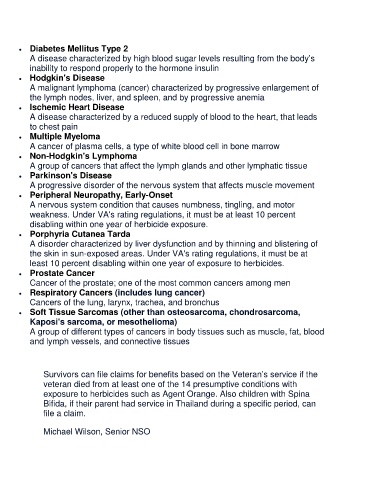 veteran died from at least one of the 14 presumptive conditions with