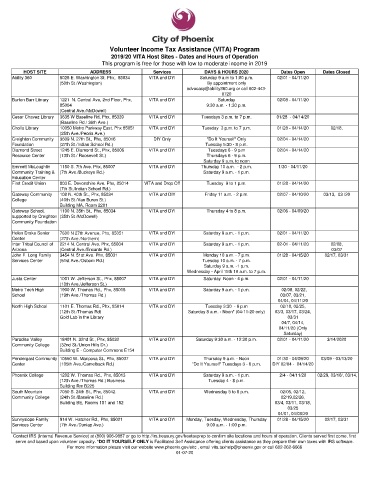 2019/20 VITA Host Sites - Dates and Hours of Operation