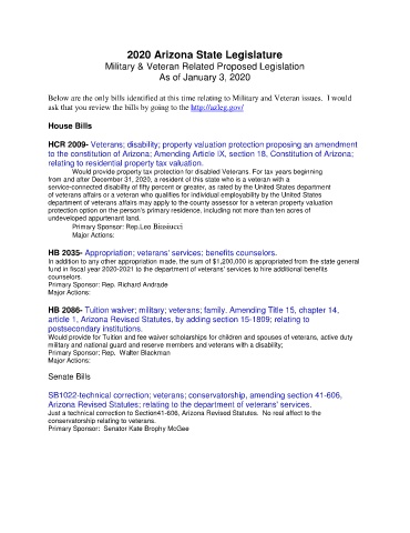 Military & Veteran Related Proposed Legislation