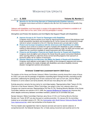 for 2020. Last year saw the passage of legislation expanding Agent Orange benefits, promoting suicide