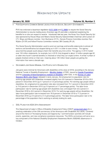 • PVA SUPPORTS COMMON SENSE LEGISLATION ON SOCIAL SECURITY STATEMENTS