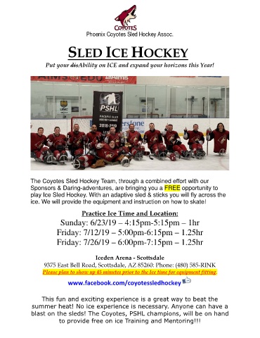 The Coyotes Sled Hockey Team, through a combined effort with our