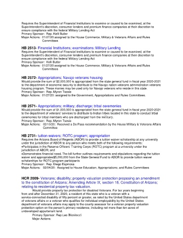 Major Actions: 02/10/20: Received a Do Pass recommendation by the House Military & Veterans Affairs