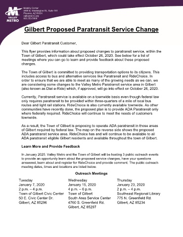 are considering some changes to the Valley Metro Paratransit service area in Gilbert
