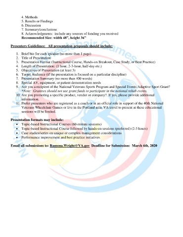 Email all submissions to: Ramona.Wright@VA.gov Deadline for Submission: March 6th, 2020