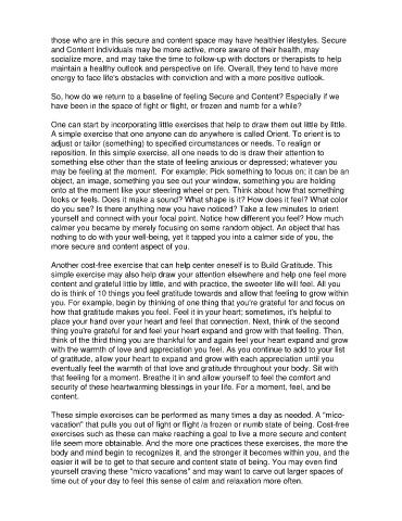 those who are in this secure and content space may have healthier lifestyles. Secure