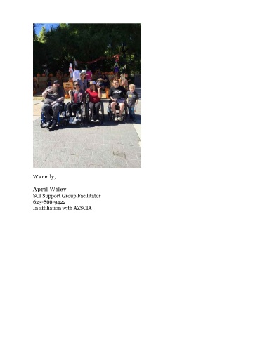 Warmly, April Wiley SCI Support Group Facilitator 623-866-9422 In affiliation with AZSCIA
