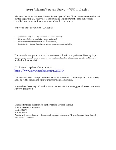 The 2019 Arizona Veteran Survey is now open online! All VSO members statewide are
