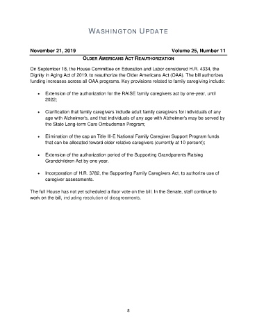 funding increases across all OAA programs. Key provisions related to family caregiving include: