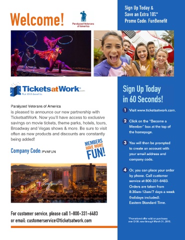 or email: customerservice@ticketsatwork.com *Promotional offer valid on purchases