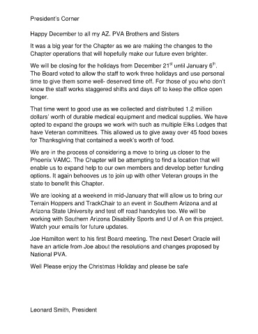 Phoenix VAMC. The Chapter will be attempting to find a location that will