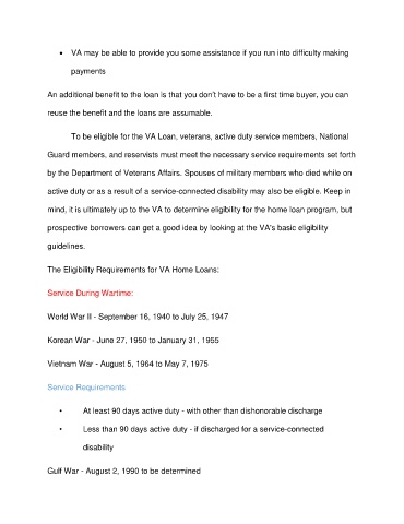 • VA may be able to provide you some assistance if you run into difficulty making