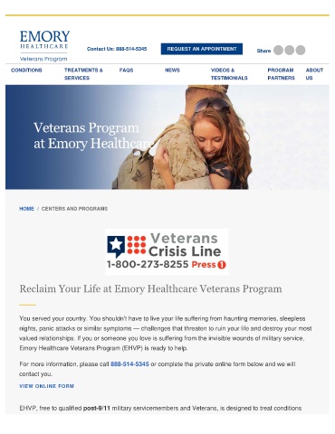 Emory Healthcare Veterans Program (EHVP) is ready to help.