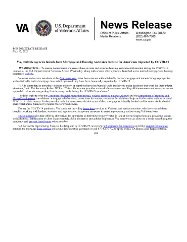 pandemic, the U.S. Department of Veterans Affairs (VA) today, along with several other agencies, launched a new unified mortgage and housing