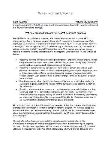 PVA RESPONDS TO PROPOSED RULE ON VA CAREGIVER PROGRAM