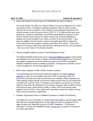 At the end of April, H.R. 6322, the “Student Veteran Coronavirus Response Act of 2020,”