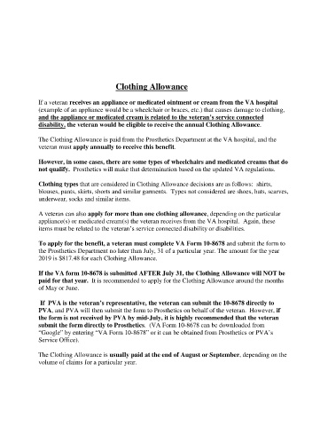 If the VA form 10-8678 is submitted AFTER July 31, the Clothing Allowance will NOT be