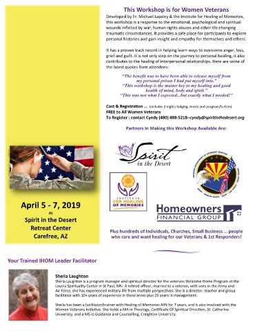 To Register : contact Cyndy (480) 488-5218--cyndy@spiritinthedesert.org