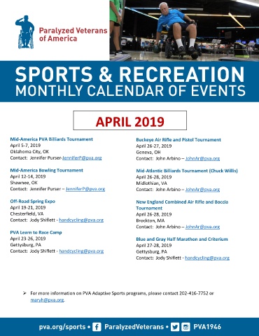 For more information on PVA Adaptive Sports programs, please contact 202-416-7752 or