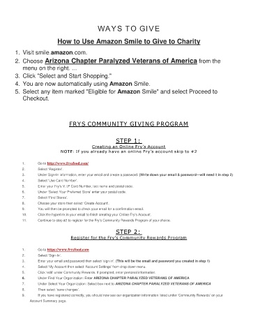 6. Under Find Your Organization: Enter ARIZONA CHAPTER PARALYZED VETERANS OF AMERICA