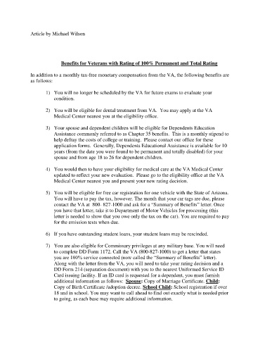 you are 100% service connected (now called the “Summary of Benefits” letter).