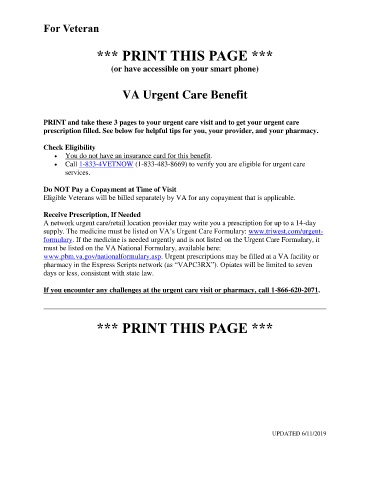 PRINT and take these 3 pages to your urgent care visit and to get your urgent care