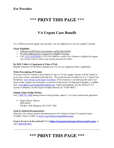 As a TriWest network urgent care provider, you are authorized to care for eligible Veterans.