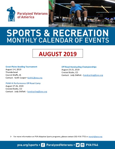 For more information on PVA Adaptive Sports programs, please contact 202-416-7752 or maryh@pva.org.