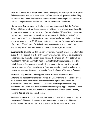 supplemental claim lane. Under AMA, veterans can navigate lanes and skip