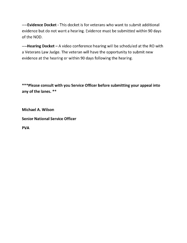 ----Evidence Docket - This docket is for veterans who want to submit additional