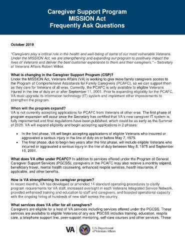 as they care for Veterans of all eras. Currently, the PCAFC is only available to eligible Veterans