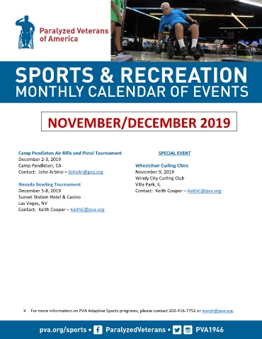 For more information on PVA Adaptive Sports programs, please contact 202-416-7752 or maryh@pva.org.
