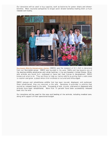 Southwest Wildlife Conservation Center (SWCC) was the recipient of $11,050 in donations
