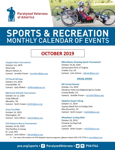 October 11-12, 2019 Contact: Jennifer Purser – JenniferP@pva.org