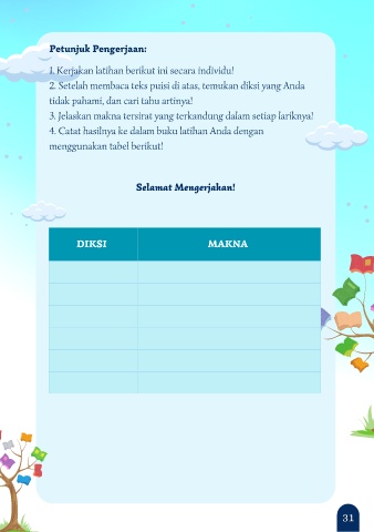 2. Setelah membaca teks puisi di atas, temukan diksi yang Anda