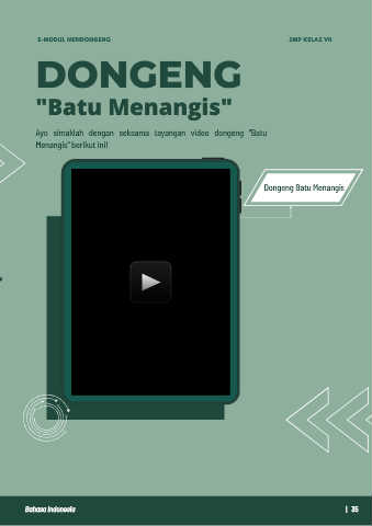 E-MODUL MENDONGENG SMP KELAS VII DONGENG "Batu Menangis" Ayo simaklah dengan seksama tayangan video dongeng "Batu Menangis" berikut ini! Dongeng Batu Menangis Bahasa Indonesia | 27 Bahasa Indonesia | 35