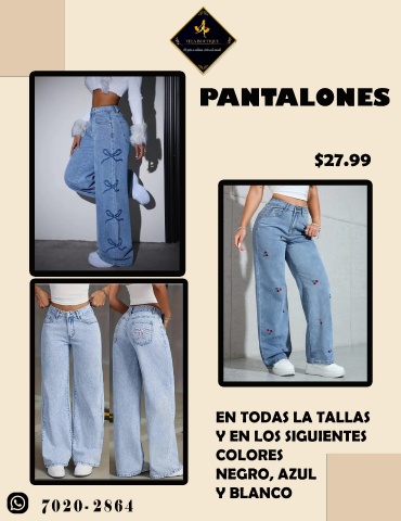 PANTALONES $27.99 EN TODAS LA TALLAS Y EN LOS SIGUIENTES COLORES NEGRO, AZUL Y BLANCO 7020- 2864