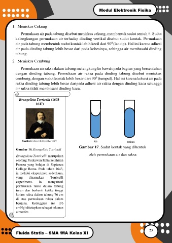 dengan dinding tabung. Permukaan air raksa pada dinding tabung disebut meniskus